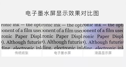 Eink是全反射式,也就是隨著環(huán)境光的變化顯示效果會(huì)不同。外界光源越好,顯示效果越好。因此在晴朗的戶外看Eink電子書與看紙質(zhì)書的體驗(yàn)幾乎一樣。
